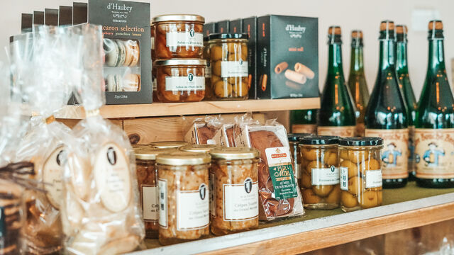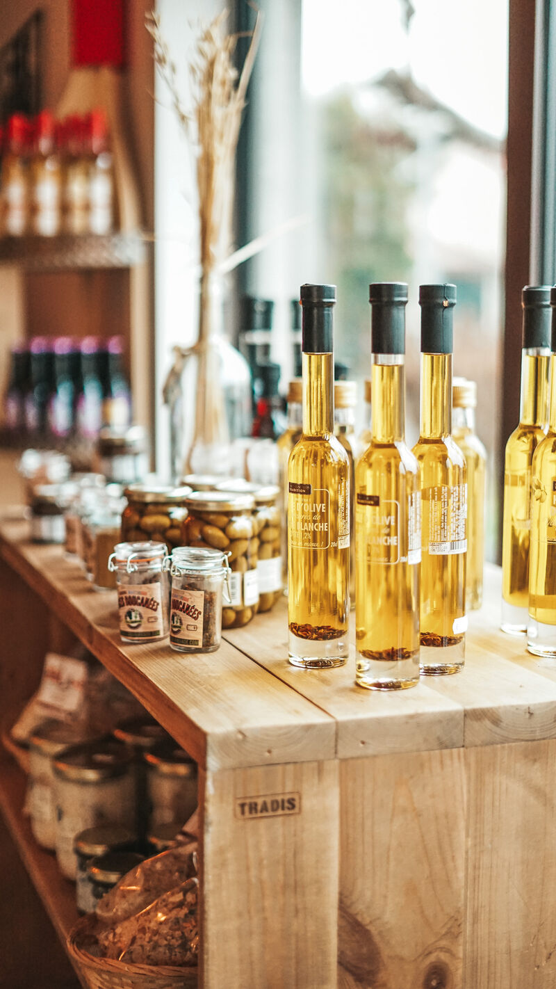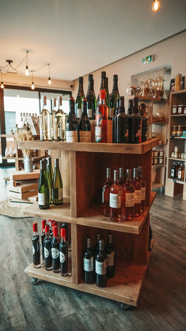 Nous  proposons  une partie épicerie fine, ou vous trouverez des produits locaux et originaux, ainsi que des vins et apéritifs de région.